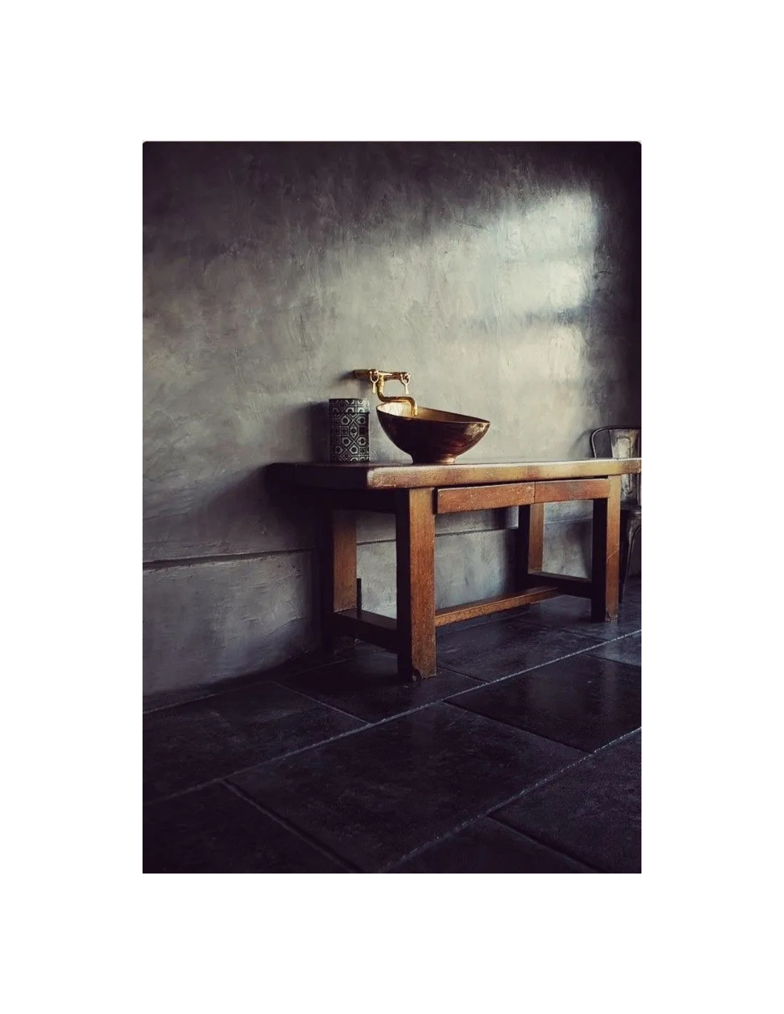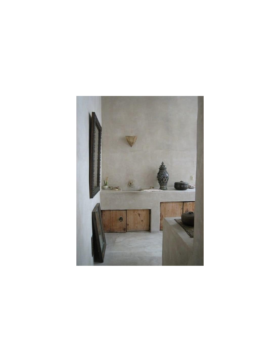 Enlucido impermeable de cal para el revestimiento de superficies tanto en el interior como en el exterior de edificios. Tadelakt es el recubrimiento tradicional de los palacios, baños turcos y baños de los riads en Marruecos.