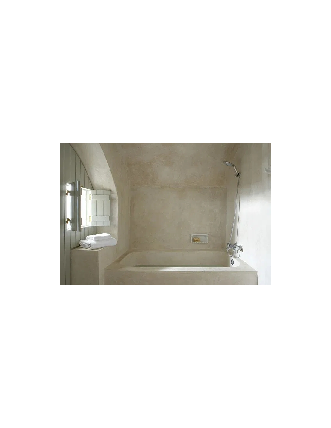 • Revestimiento graso tipo estuco impermeable y brillante fabricado con cales hidratadas e hidráulicas como aglutinante y arenas de mármol. • Se puede aplicar en una gran variedad de sustratos de mampostería nueva y antigua, sin que esto condicione el acabado final. • El revestimiento Tadelakt tiene un aspecto lujoso y es suave al tacto, con ondulaciones que denotan el trabajo artesano de los maestros. • Se puede aplicar en cualquier tipo de superficies, paredes interiores, exteriores y suelos, así como en la fabricación de bañeras, duchas y lavabos, confiriéndole una gran capacidad decorativa. • El sistema de Tadelakt es resistente al agua, pero al mismo tiempo, permeable al vapor de agua, asegurando el intercambio de vapor de agua desde la parte interior a la exterior, mejorando la calidad del aire interior. • Con Tadelakt se crean superficies fascinantes, onduladas, vivas, naturales y brillantes. • El efecto de color de Tadelakt no es uniforme como lo es en los enlucidos pintados, ya que depende del tratamiento al que sea sometido. Donde el material se compacta de manera más intensa, surge una tonalidad más oscura, más profunda. Dependiendo de la luz a la que esté expuesto, el color de una superficie de Tadelakt será diferente cada vez.